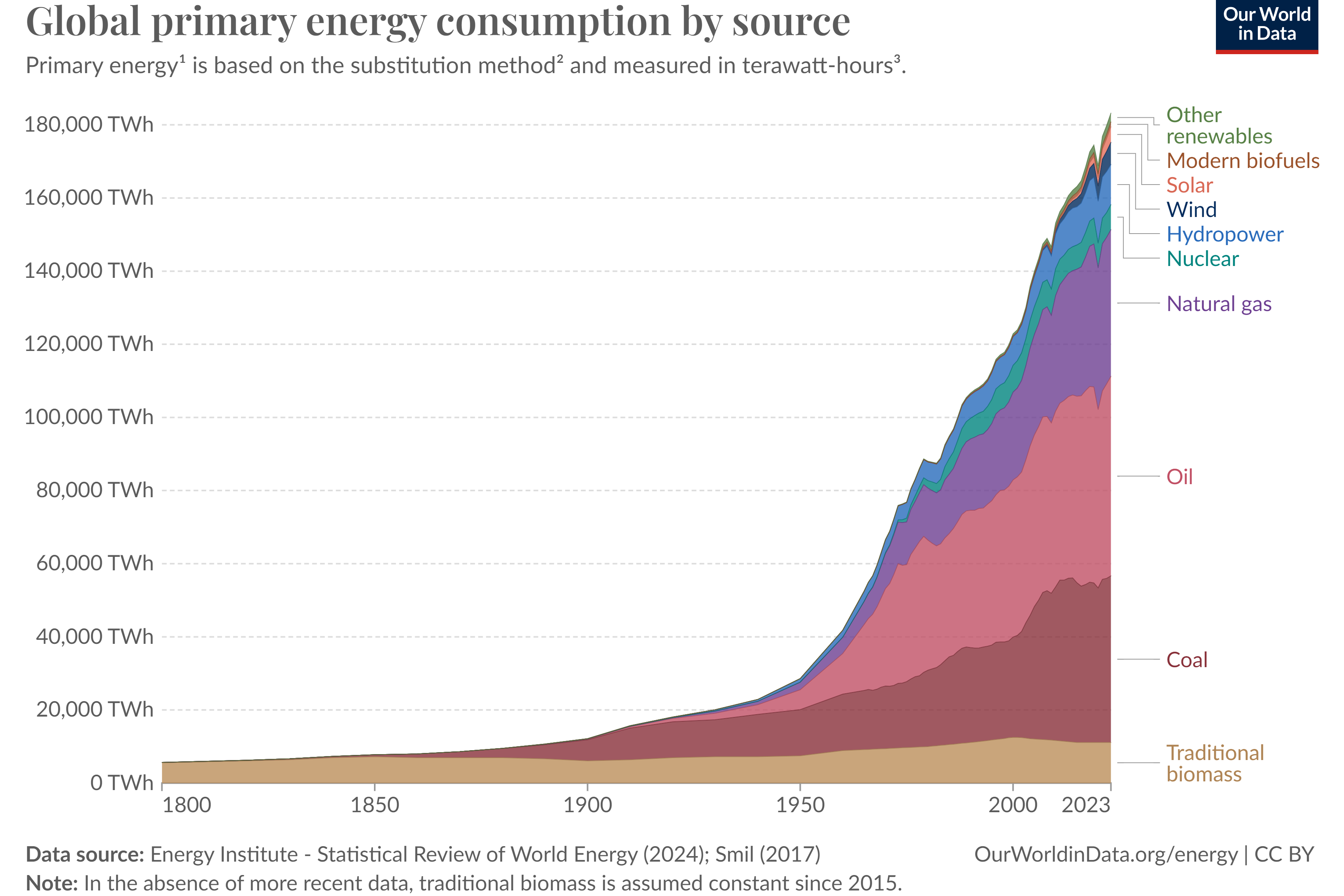 Menschen machten sich die Erde untertan, indem sie Maschinen bauten, die für sie arbeiteten und die Beschränkungen menschlicher Muskelkraft überwanden. Die Maschinen brauchten fürs arbeiten auch Energie, aber diese kam vornehmlich aus fossilen Energieträgern: